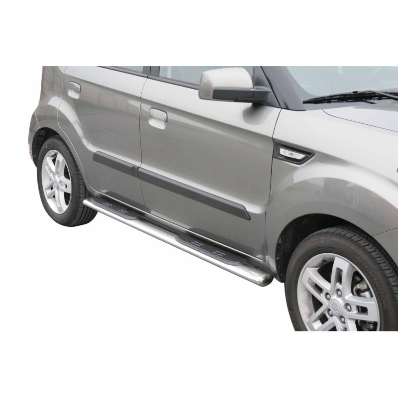 Boční ochranné oválné nerezové nášlapy s plastovými prolisy pro Kia Soul 2009-2013